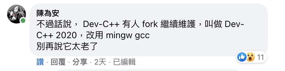 唯有少數幾篇文,可以吸引到我的目光,講到 C 語言總會講到 Dev-C++。