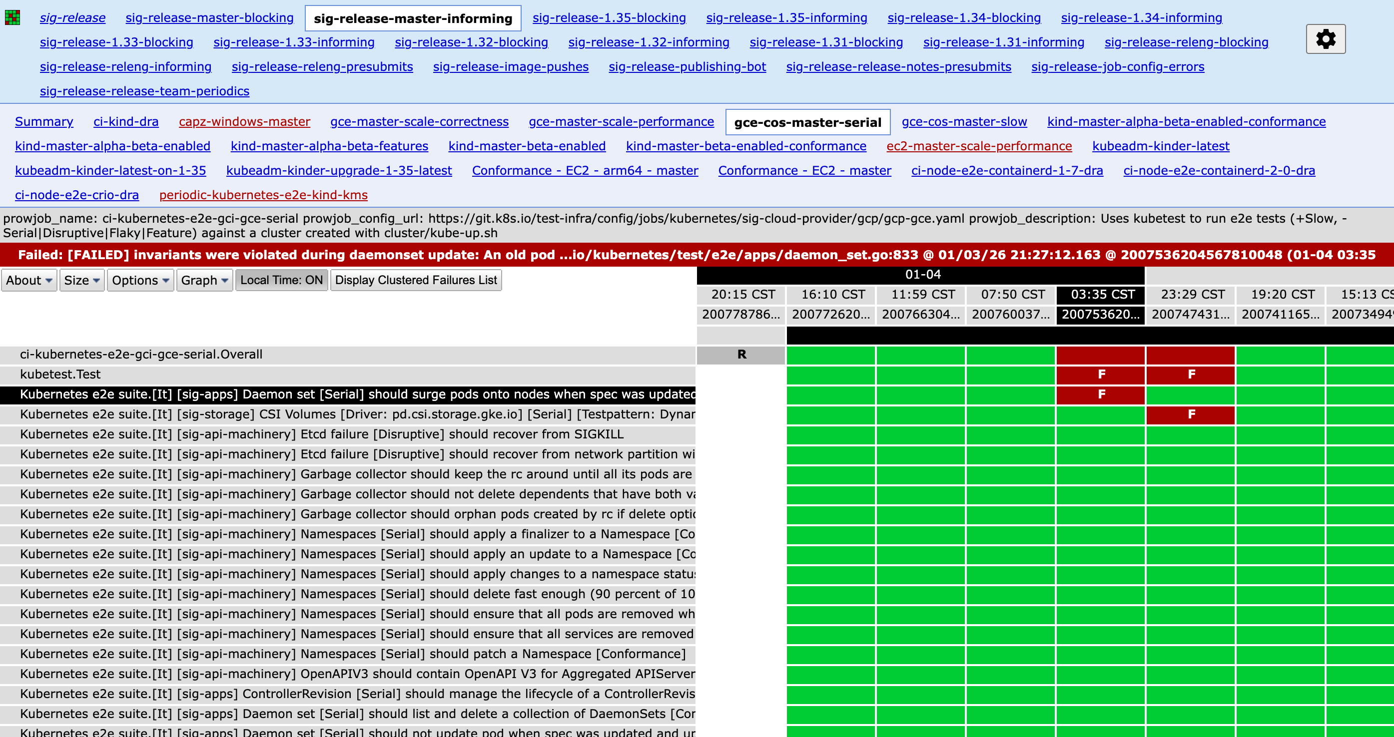 Blocking 和 Informing 差異主要是緊急和重要程度,放在 Blocking 的 job 通常都很緊急、重要,出現錯誤要跟 SIG 確認是否會阻礙發佈或修正,其他 job 很重要但不需要緊急處理(或測試頻率較低)就會放到 Informing。