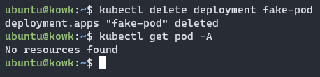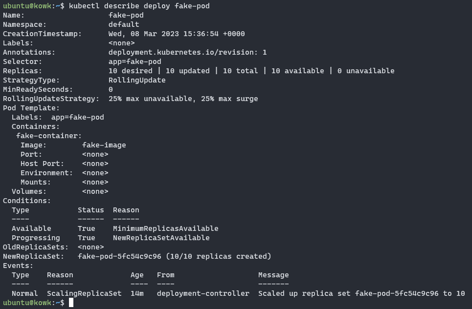 Deployment 建立成功後,會顯示下列輸出: deployment.apps/fake-pod created