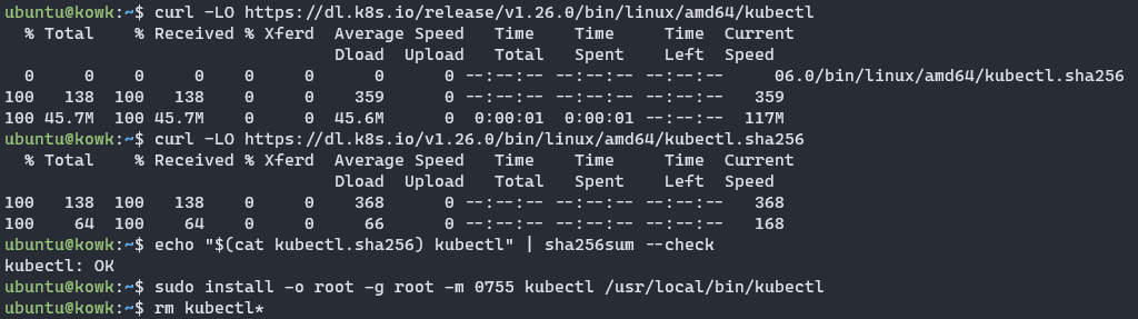 curl -LO https://dl.k8s.io/v1.26.0/bin/linux/amd64/kubectl.sha256