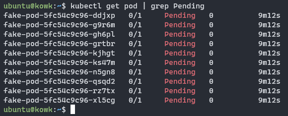 也可以搭配 grep 看一下 Pending 的 Pod。