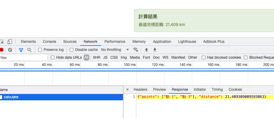 透過 Google 地圖產生 KML 後丟上去,系統會回傳最遠兩點之間的距離。