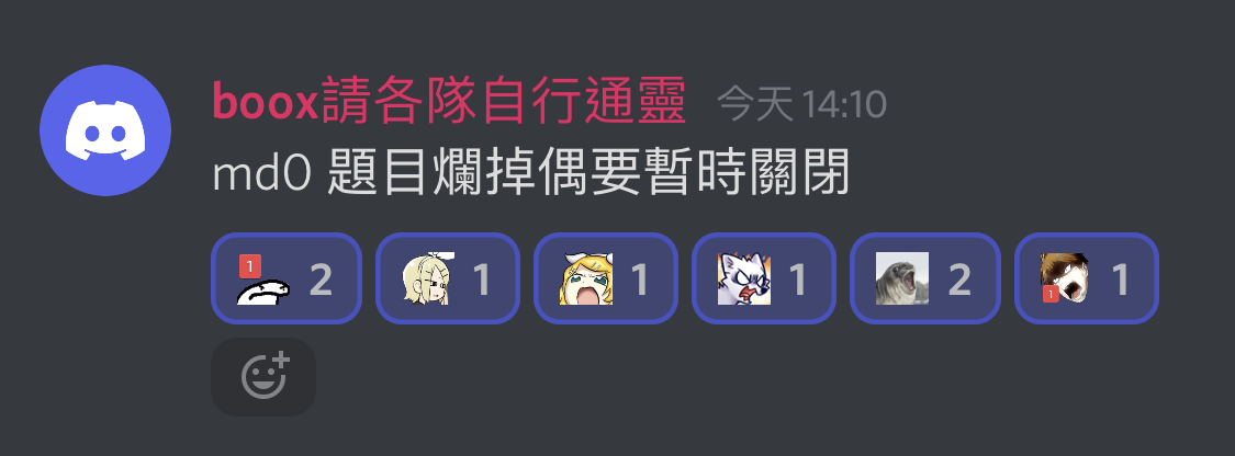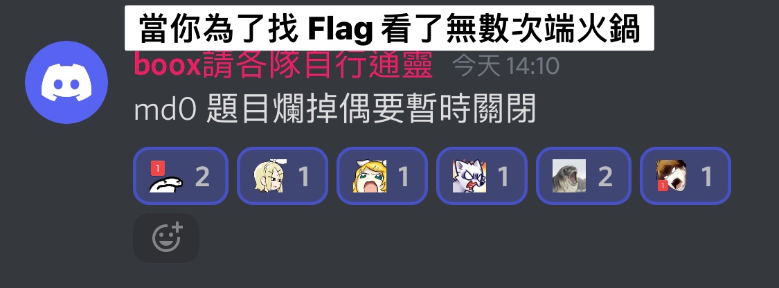簽到題,Discord 找答案,直接把總是暴雷打開就可以不用一個一個點了。