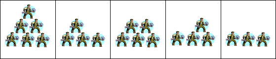 某特技團經常表演疊羅漢的節目。表演時通常在最底層會先站好一排連續的 n 個人,然後在任意連續兩人的肩膀上面便可支撐另一個人站在這兩個人的上一層。在第二層如果有連續兩人的話,當然可繼續往第三層疊上一個人,以此類推。為了增加趣味性,有時會組合出不同的型態展現在觀眾的眼前。舉例來說,如果 n=3,也就是說底層共有 3 個人,那麼就有下列 5 種不同的組合。